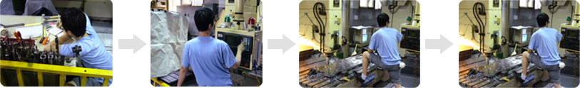 3번 뚫고 한번 위로 올라 오는 작업 을 연속 하여 2배 빠른 가공 작업 완료가 가능합니다.