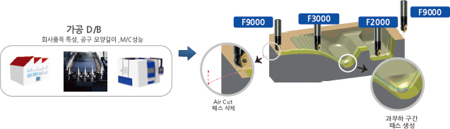 | 2. 가공시간 | - 가공 D/B에 의한 최적 가공 - 최적 가 감속 30~50% 빠른 가공 | - 기술 수준에 따른 편차 - 기계 가속도 한계 |