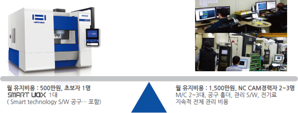| 동일 투자 조건 | 1대 (Smart technology S/W, 공구 포함) | NC 2~3대, 공구, CAM등 |