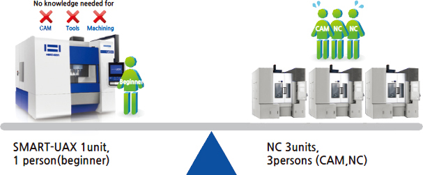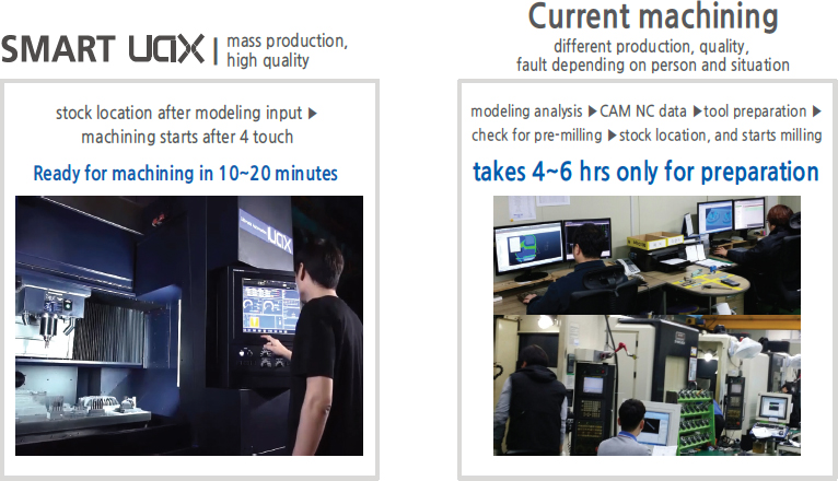 | Identical investment terms | 1 unit( including Smart technology S/W,tools) | NC machine 2~3 units, tools, CAM etc |
