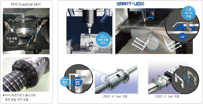 | 5. Machine span | - Best dust collector system - Automatic collision prevention - Guarantee long-term accuracy & span | - Wide variations depending on machine - No collision check - Span depending on maintenance |